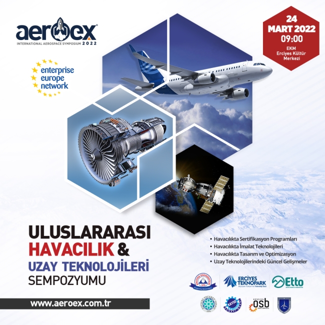24 Mart 2022 tarihinde Erciyes Kültür Merkezi’nde Erciyes Teknopark tarafından “Aeroex 2022 Uluslararası Havacılık ve Uzay Teknolojileri Sempozyumu” gerçekleştirilecektir.